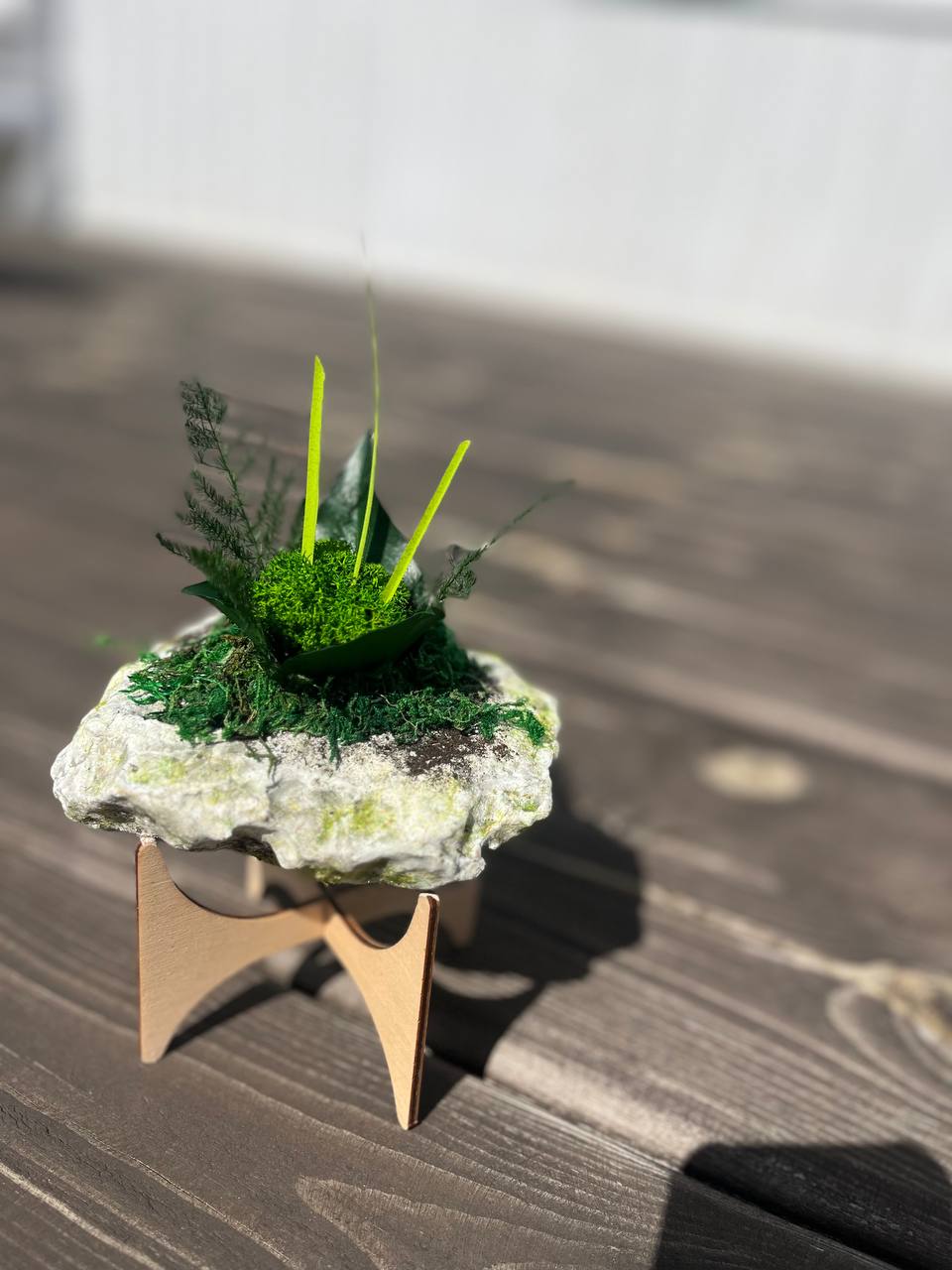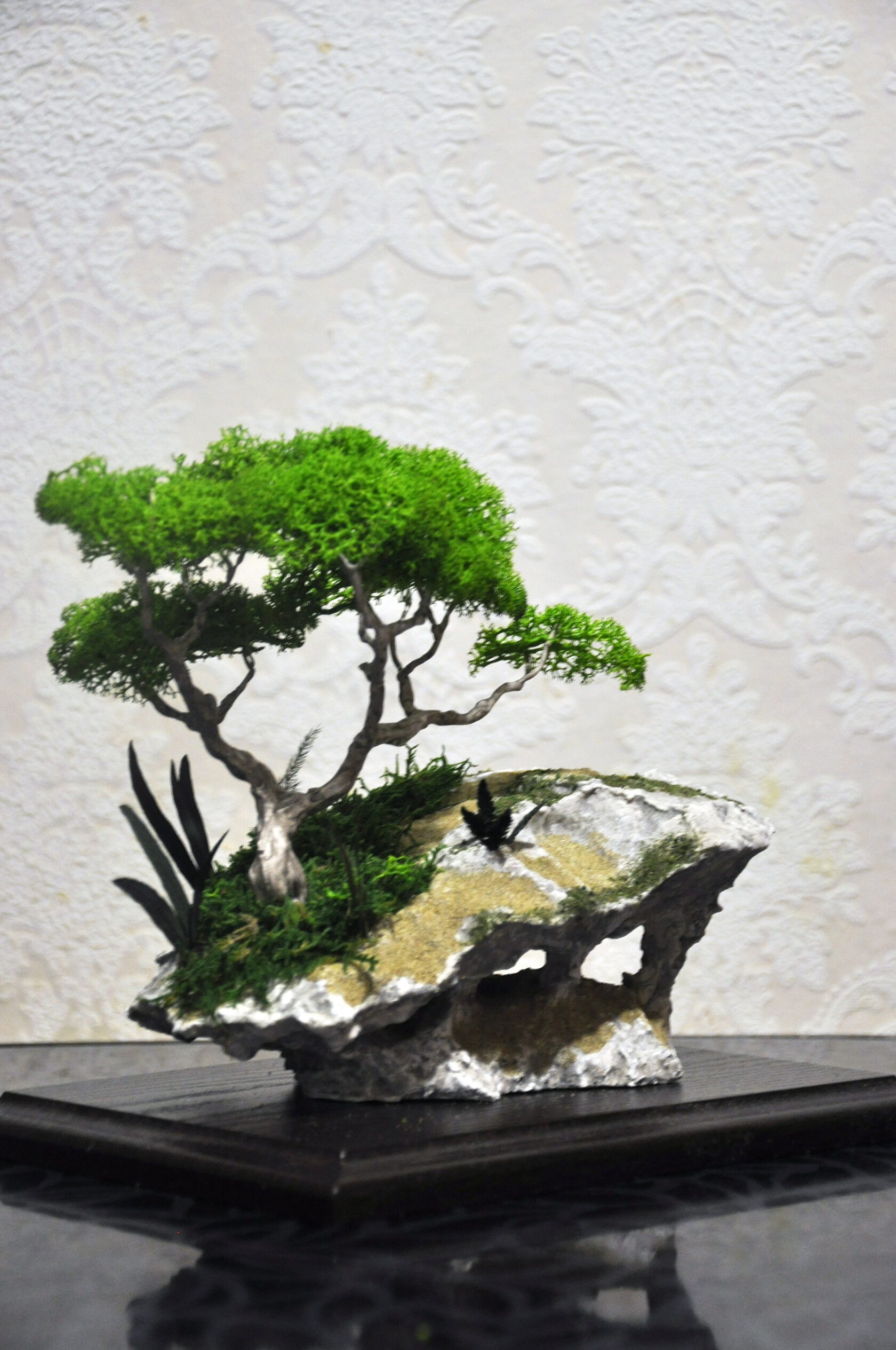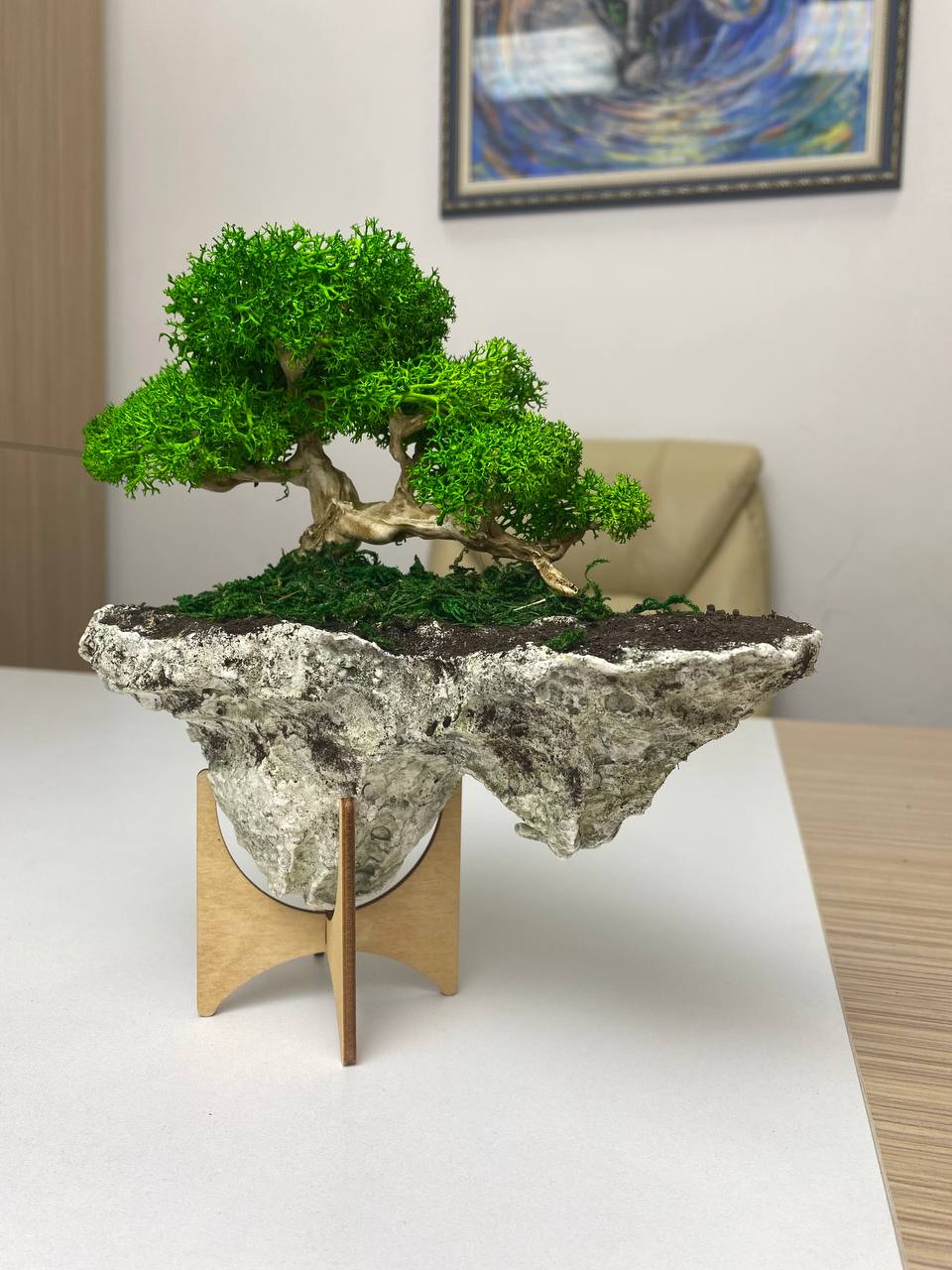 Фитокартина выполнена из стабилизированных растений и искусственного камня. Можно использовать на рабочем столе или повесить на стену. Материалы: мох пластовой, ветки амаранта, листья папоротников, грунт, искусственный камень.