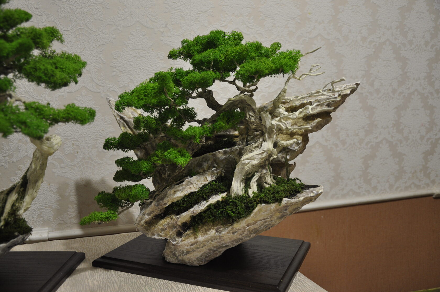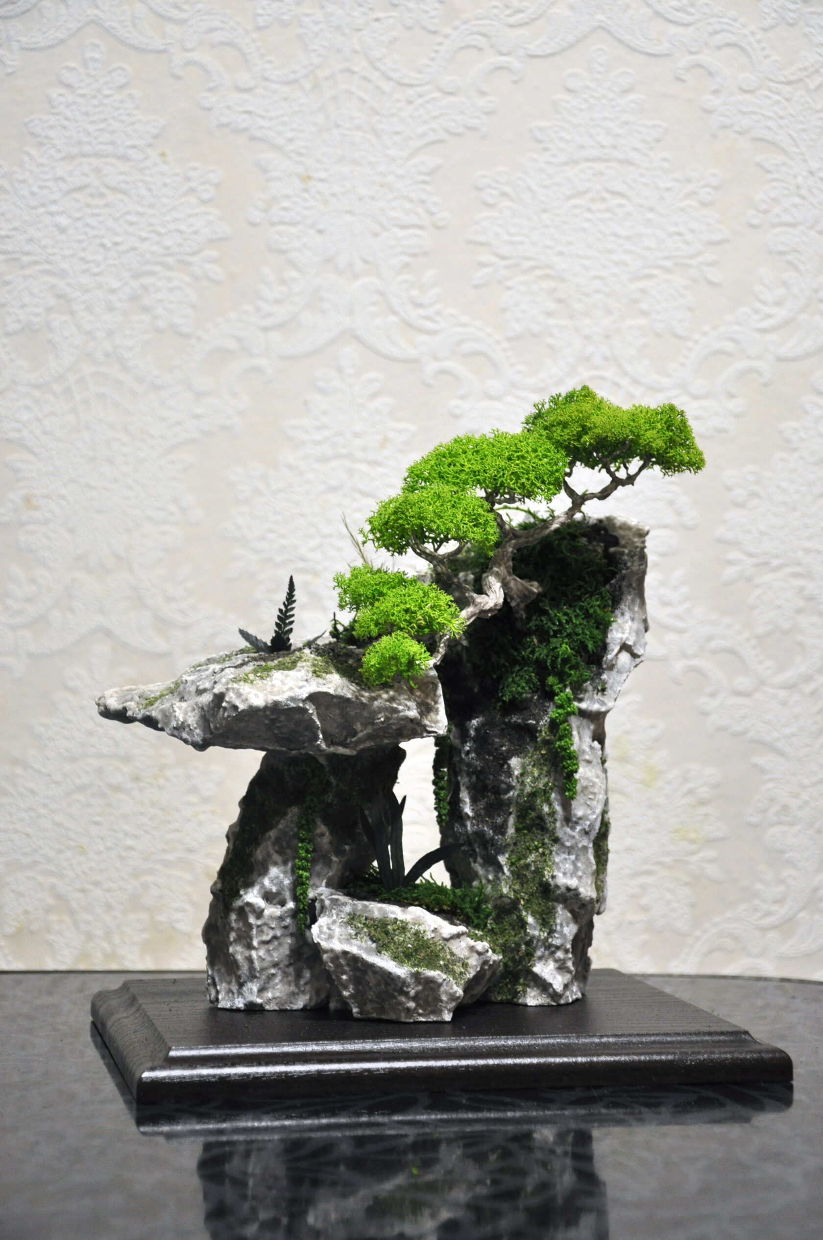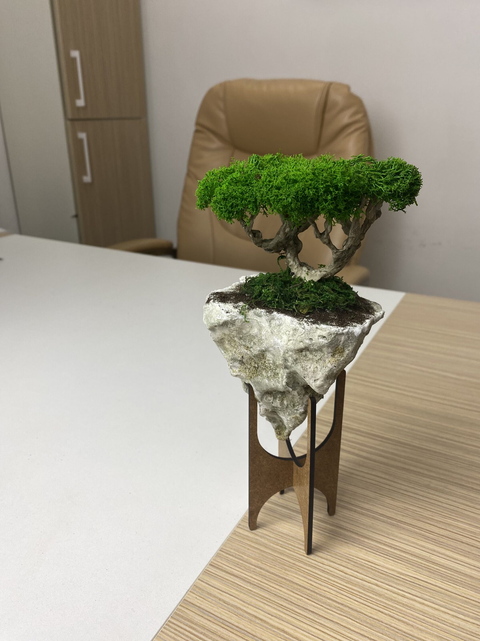 Фитокартина выполнена из стабилизированных растений и искусственного камня. Можно использовать на рабочем столе или повесить на стену. Материалы: мох пластовой, ветки амаранта, листья папоротников, грунт, искусственный камень.